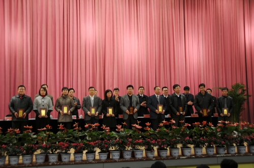 温成涛宣读了“吉林农业大学关于对教学工作先进集体和先进个人的表彰决定”及获奖人员名单,与会领导为获奖集体和个人代表颁发了获奖证书。获优秀教学团队代表马贵龙教授、优秀教学管理单位代表王连君教授、师德标兵代表赵权教授和优秀教学质量奖代表王吉老师分别作了大会发言。