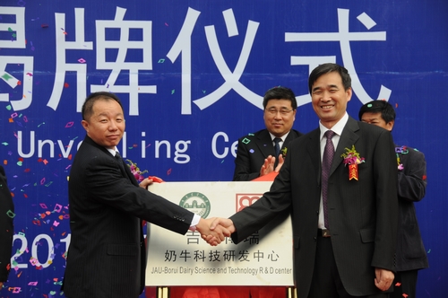 9月20日上午,吉农博瑞奶牛科技研发中心揭牌仪式在我校动物科学技术学院隆重举行。吉农博瑞奶牛科技研发中心是我校与长春博瑞饲料有限公司协商共建的一个科技研发机构。