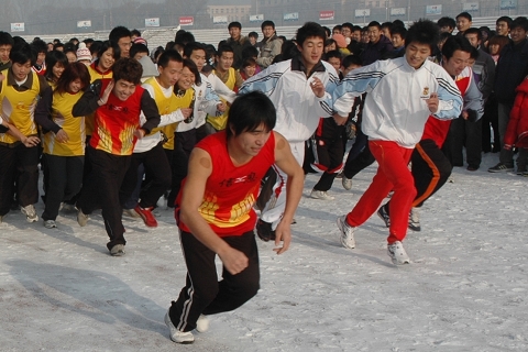 12时09分,伴随着校团委书记赵明家的发令枪响,参赛选手箭一般的冲出起跑线。尽管天气寒冷,但赛场上的运动员奋勇争先,努力拼搏,把当代大学生刚毅顽强的品格演绎得淋漓尽致。场外的拉拉队员摇旗呐喊、加油助威,呈现出了团结和谐的比赛氛围。