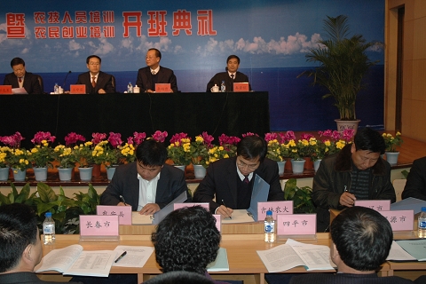 11月26日下午,吉林省2009-2010年度冬春农业科技大培训活动启动暨农技人员培训、农民创业培训开班典礼在我校中心教学楼一楼报告厅隆重举行。副省长王守臣、省政府副秘书长李福升、省农业委员会主任任克军、我校校长秦贵信出席大会并主席台就座。大会由李福升主持。