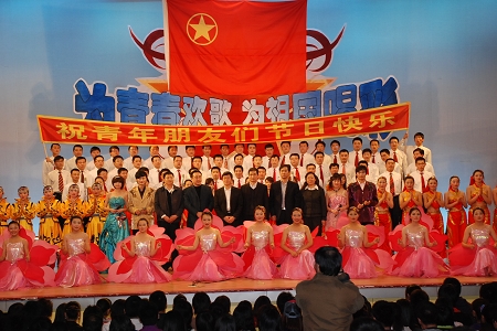 为纪念“五四”运动90周年,4月28日下午,由校团委主办,校学生会、校大学生社团联合会共同举办的“为青春欢歌,为祖国喝彩”大型文艺汇演在鲲鹏剧场隆重举行。学校党委书记姚秋杰,校长秦贵信,党委副书记温成涛,副校长孙少平、孙爱军,纪委书记孙杰光,副校长张立峰、陈光,学校办公室主任张冀男、副主任肖淑侠及各学院党委书记、副书记,团委书记和学生工作办公室全体成员与我校近千名青年学生共同观看了演出。