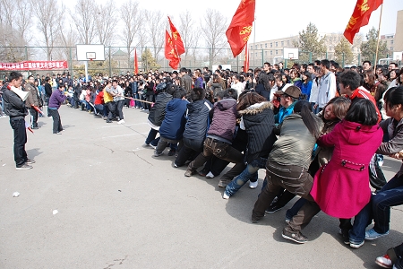 为丰富我校学生的课余文化生活,培养大学生的团队意识和合作精神,增强大学生体质,学校团委、校学生会组织开展第三届大学生体育文化节。3月17日中午,大学生拔河比赛暨第三届大学生体育文化节开幕式在学校篮球场举行,校团委书记赵明家、校团委宣传部部长王璐出席了开幕式并观看比赛。