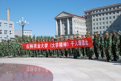 为贯彻落实党的十七大报告提出的弘扬中华文化,建设中华民族共有精神家园的目标要求,贯彻国家语委提出的“把语言文字工作与弘扬中华优秀文化相结合”的工作思路,响应中宣部等六部门关于以传统节日为主题开展经典诵读的号召,9月23日,校团委举办了吉林农业大学《大学精神》千人诵读会。诵读会在教学楼前的崇智广场隆重举行。近千名同学参加了此次诵读会。 千人诵读会在宏亮而深蕴的齐诵声中拉开帷幕。“大学之道,在明明德,在亲民,在止于至善……”同学们精神饱满,神采奕奕,诵读深情,声音洪亮,队形恢宏。这憾人的诵读,既体现了中华民族优秀的传统文化,又展现了我校莘莘学子的勃勃生机。整个诵读会仿佛把在场的每一个人都带到了美妙的精神世界,使同学们在朗朗的诵读声中对大学之道产生了新的思考、新的感悟和新的诠释。实现了推广普通话和弘扬中华民族优秀传统文化相结合,彰显了中华语言与文化魅力,提高了大学生语言文字规范意识和应用水平。 本次《大学精神》千人诵读会以吉林省教育厅、省语委、团省委联合开展推普周“经典诵读”活动为载体,以我校的新生军训为契机组织开展。在活动开展过程中,学校团委为2008级新生统一印发了《大学精神》,以军训连队为单位组织诵读活动,并进行了检查验收,评选出了10个连队1000余人参加学校的《大学精神》千人诵读会。吉林教育电视台对活动进行了录制。