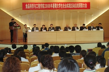 10月10日下午,食品科学与工程学院2008年暑期大学生“三下乡”社会实践活动总结表彰大会在教学楼一楼学术报告厅举行。学校党委副书记温成涛、校关工委副主任王松心、学生处处长丁庆东、校团委书记于运国、党委宣传部副部长李蕾、招生就业处副处长叶长江以及学院党政领导、专业教师、学生工作办公室全体成员出席了大会。 大会由学院学生工作办公室赵丹老师主持。学院分团委书记、学生工作办公室主任孟凡鹏宣读了表彰决定,随后与会领导为获奖同学颁奖。颁奖仪式结束后,学院社会实践活动重点小分队代表柴宏达同学和2008届毕业生曹铃同学分别在大会上向与会老师、同学介绍了参加社会实践的心得体会。 院长刘景圣教授代表学院向与会校领导汇报了近两年来食品科学与工程学院依托董事会办学,大学生在社会实践工作中、特别是暑期社会实践活动中的创新举措以及取得的可喜成绩和成功经验。 大会对近两年来的大学生社会实践工作进行了总结。两年来,食品科学与工程学院共建立大学生社会实践基地6个,就业基地2个,为学生提供实践岗位384个,组成了16支大学生暑期社会实践小分队,学生获得企业薪酬10余万元,很多毕业年级的学生和实践单位建立了就业意向和到实践单位工作。2008年,学院“赴松源市东三家子乡科技兴农服务团”不仅荣获学校杰出社会实践小分队荣誉称号,同时分别被评为吉林省和长春市“校村服务计划”优秀团队,一名指导教师被评为吉林省大学生社会实践活动先进个人。 最后,温成涛代表学校党委作了重要讲话,他对食品科学与工程学院社会实践工作取得的成绩给予了充分的肯定,并对学院今后的工作提出了殷切的期望,同时希望广大同学积极行动起来,努力学好专业技能,积极投身社会实践,在活动中接受教育,在活动中锻炼成才。