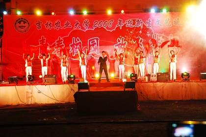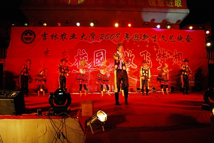 又是一年秋风送爽,又是一轮花好月圆。9月18日晚6:30,由校团委主办,校学生会、校社团联合会承办的“青春校园•放飞梦想”迎新生文艺晚会在学校第一体育场隆重举行。学校党委副书记温成涛、学生处处长丁庆东、保卫处处长王洪斌、校团委书记于运国、校团委副书记董雅致及各学院党总支副书记、辅导员老师、全体军训教官与近万名青年学生共同观看了演出。 本次晚会师生同台献艺,现场气氛热烈。晚会在校合唱团雄壮激昂的大合唱《我们是骄傲的大地之子》中拉开序幕。这首由我校校友张冠宇老师创作的校歌唱出了60年来农大人顽强拼搏的历程和满怀希望的心声,广大新生在这恢宏的旋律中深深体会到“明德崇智、厚朴笃行”的农大精神;平日里的教官是严厉的、不苟言笑的,而晚会上的教官是可爱的、幽默风趣的,教官们精心准备的音乐小品《降魔神兵》把晚会推至高潮,他们别出心裁的创意和诙谐的表演使得台下笑声不断、掌声雷动;许博同学的一曲《一千年以后》向我们展示了2008级新生朝气蓬勃、多才多艺的一面;活力四射的复古舞、激情洋溢的歌曲串烧、武术协会的武术表演等精彩节目也不时赢得观众们热烈的掌声。整场晚会高潮迭起,掌声不断。最后,晚会在王欢同学倾情演唱的2008年北京残奥会主题曲《Everyone Is No.1》中圆满落下帷幕。 本场晚会用精彩纷呈的节目向2008级新生表达了学校老师和同学们最热烈的欢迎和最真挚的祝福,同时也表达了农大人对即将到来的祖国59岁生日的热烈期盼和真诚祝愿。