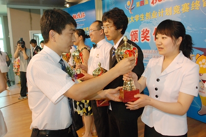 6月13日上午,由共青团吉林省委、省教育厅、省劳动和社会保障厅、省科协、省学联共同主办,我校承办的第四届“挑战杯”万易吉林省大学生创业计划竞赛终审决赛答辩会暨颁奖仪式在我校中心教学楼国际报告厅隆重举行。来自省内20所高校的500余名学生科技精英齐聚一堂,迎接创业挑战,向评委和在场的观众介绍自己的创业作品。共青团吉林省委副书记陈耀辉、省就业服务局副局长陈云岫,学校党委书记姚秋杰、校长秦贵信、学校党委副书记温成涛等领导出席答辩会。答辩会由吉林电视台著名节目主持人薛倩和我校经济管理学院孙强同学主持。