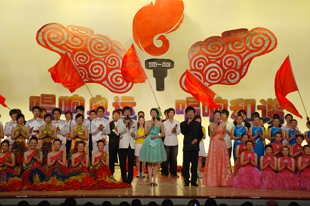 4月29日晚,由校团委、校学生会、大学生社团联合会共同举办的大学生纪念“五•四”运动89周年“唱响奥运,唱响和谐”大型歌会在我校鲲鹏剧场隆重举行。校党委副书记温成涛、学生处处长丁庆东、校团委书记于运国及各学院党总支副书记、分团委书记和学生工作办公室全体成员与我校数千名青年学生共同观看了演出。 当晚,鲲鹏剧场内人头攒动,气氛轻松愉快,处处洋溢着欢声笑语。晚会在歌伴舞《北京呼唤你》中拉开序幕,表演者以悠扬的旋律和完美的舞姿吸引着在场观众的目光,用动人的旋律向观众展示了一个友好、和谐的北京;我校的“凤凰传奇”组合以一曲歌伴舞《自由飞翔》唱出了中国人民特有的情怀,男歌手精彩的街舞表演,女歌手优美悦耳的歌声,赢得了同学们的阵阵喝彩与欢呼;一曲献给在2008年冰雪灾害中的人们和英勇无畏的人民解放军的歌曲《感动》,震撼着在场每一位观众的心灵,充分展示了在中国共产党领导下,中华民族无往不胜的胸怀和气概;在动人的歌曲过后,一群可爱的孩子们稚嫩的身影出现在了观众们的视野中,一首歌曲《我是明星》以其幽默诙谐的场景、默契的配合,在为观众们带来欢歌笑语的同时,也体现出了青年学生为祖国奥运健儿加油喝彩的心声!京剧作为中国的国粹,以一曲《说唱脸谱》更是彰显了中华民族艺术瑰宝的无穷魅力;校团委王璐老师的一曲经典民歌《美丽的心情》将整场歌会推向了高潮。整场歌会气势恢宏,高潮迭起,节目异彩纷呈,同学们倾情演绎,充分展示了我校青年学生的青春与活力,表达了对祖国和母校的热爱及对2008北京奥运会的深深祝福。 本场歌会既是我校大学生纪念“五•四”运动89周年系列活动之一,也是我校大学生“五•一”假期系列活动之一,它的成功举办,对引导青年学生弘扬“五•四”精神,坚定理想信念,理性地表达爱国热情提供了一个良好的平台,它也将进一步激励我校青年学生勤奋学习,以饱满的热情,高昂的斗志,投入到学校的建设和发展之中,为母校的60华诞献礼。