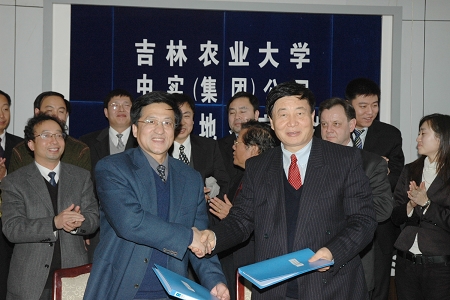 党委副书记戴立生代表吉林农业大学与中实集团总裁王天怡签署实践活动基地协议