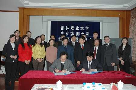 党委副书记戴立生代表我校与中实集团总裁王天怡签署了“吉林农业大学与中实(集团)公司共建实践基地”协议书;人文学院院长沈强与中实集团物业物流系统总经理汪纯宏、中实集团中实洁服务有限公司副总经理王绍江分别签署了“中实家政奖学金”协议书和“家政学专业实习基地”协议书。