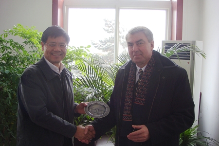 曾宏副校长代表学校向卡萨洛维奇·尼加拉伊校长(右)赠送纪念品