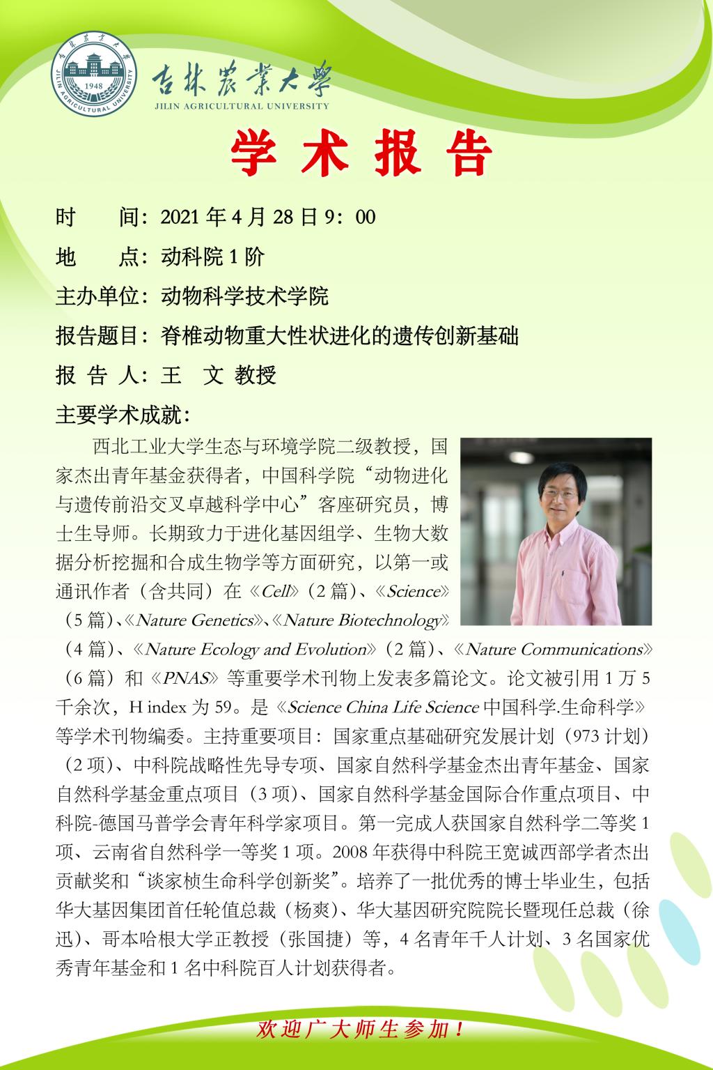 时间 2021年4月28日9:00 地点 动物科学技术学院一阶 类别 学术报告
