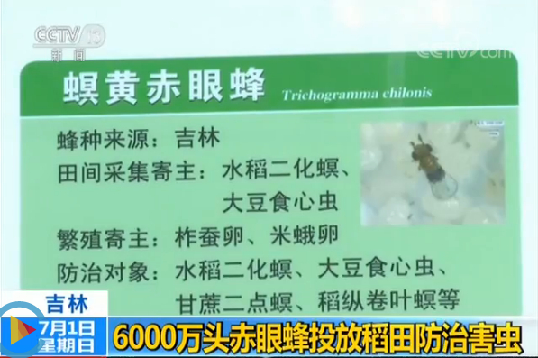 6月30日,央视新闻移动网以《以虫治虫!无人机投放6000万赤眼蜂除虫害》为题,对我校在吉林万昌使用无人机投放6000万头赤眼蜂,防治水稻二化螟——“钻心虫”的盛况进行了42分钟直播。7月1日,央视新闻频道朝闻天下以《吉林 6000万头赤眼蜂投放稻田防治害虫》和《吉林探访天敌昆虫工厂》对本次赤眼蜂投放和我校农业现代化综合技术研究所进行了采访报道。