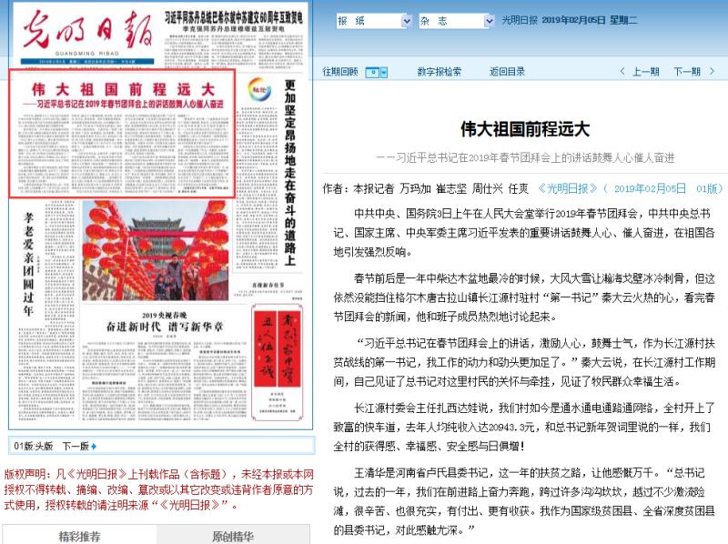中共中央、国务院3日上午在人民大会堂举行2019年春节团拜会,中共中央总书记、国家主席、中央军委主席习近平发表的重要讲话鼓舞人心、催人奋进,在祖国各地引发强烈反响。