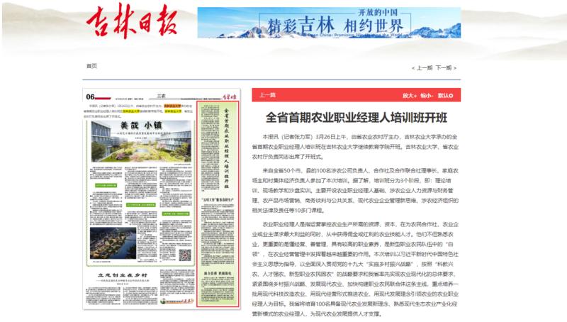 本报讯(记者张力军)3月26日上午,由省农业农村厅主办,吉林农业大学承办的全省首期农业职业经理人培训班在吉林农业大学继续教育学院开班。吉林农业大学、省农业农村厅负责同志出席了开班式。