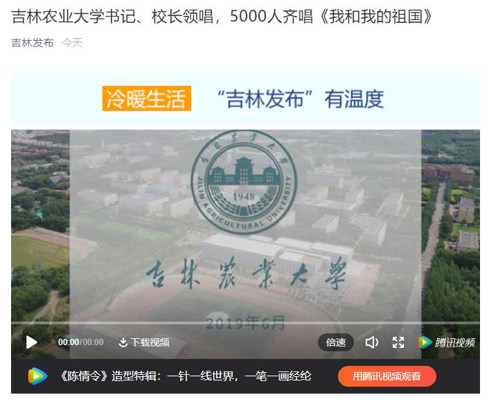 7月3日,吉林省人民政府官微吉林发布以《吉林农业大学书记、校长领唱,5000人齐唱<我和我的祖国>》为题,推送了我校毕业典礼快闪视频。