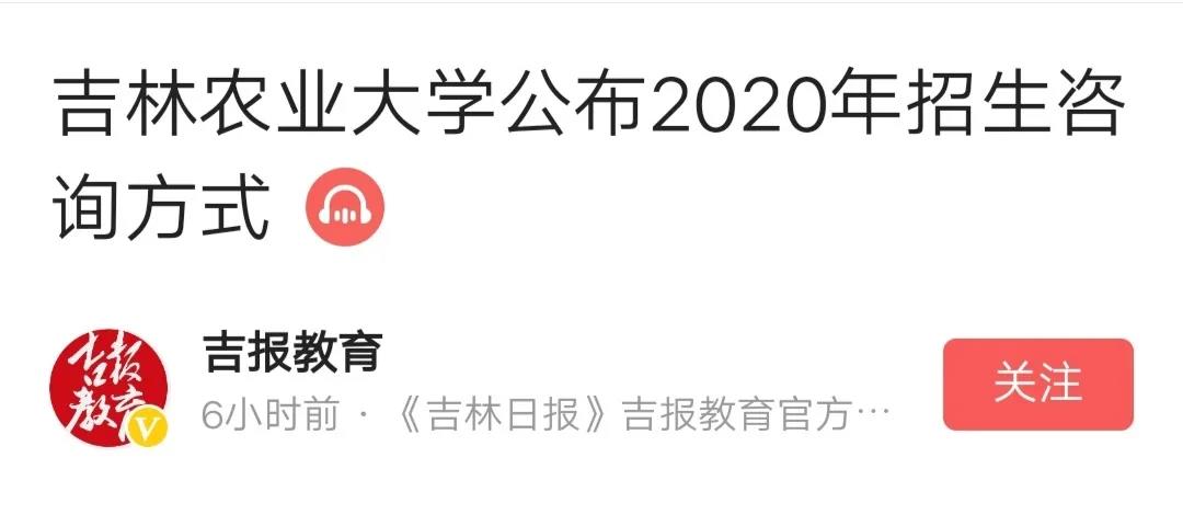2月27日,吉林日报头条号吉报教育以《吉林农业大学公布2020年招生咨询方式》为题,对我校2020年招生咨询方式进行了报道。