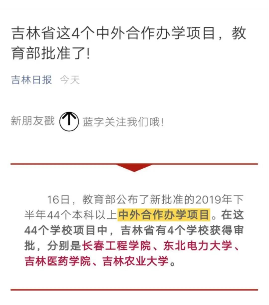 3月16日,吉林日报以《吉林省这4个中外合作办学项目,教育部批准了!》为题,对我校获批中外合作办学项目“吉林农业大学与美国西肯塔基大学合作举办动物科学专业本科教育项目”进行了报道。