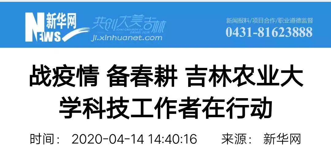 4月14日,新华网以《战疫情 备春耕 吉林农业大学科技工作者在行动》为题,对我校积极主动投身疫情防控和春耕生产,化危为机,为决胜全面小康、决战脱贫攻坚提供科技支撑进行了采访报道。