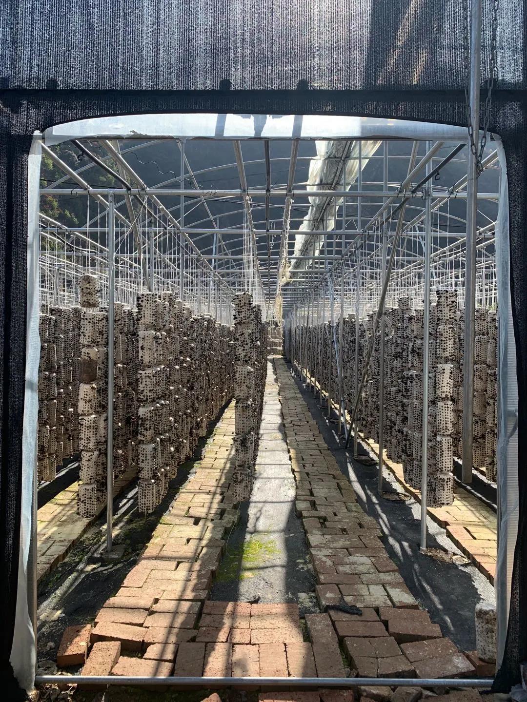 现代化的菌包棒,有的直接放在薄膜上,有的如糖葫芦插在钢筋棒上,有的则吊起来如连起来的小沙袋,待木耳长大盛开,个个便花团锦簇、精神抖擞、整装待发。