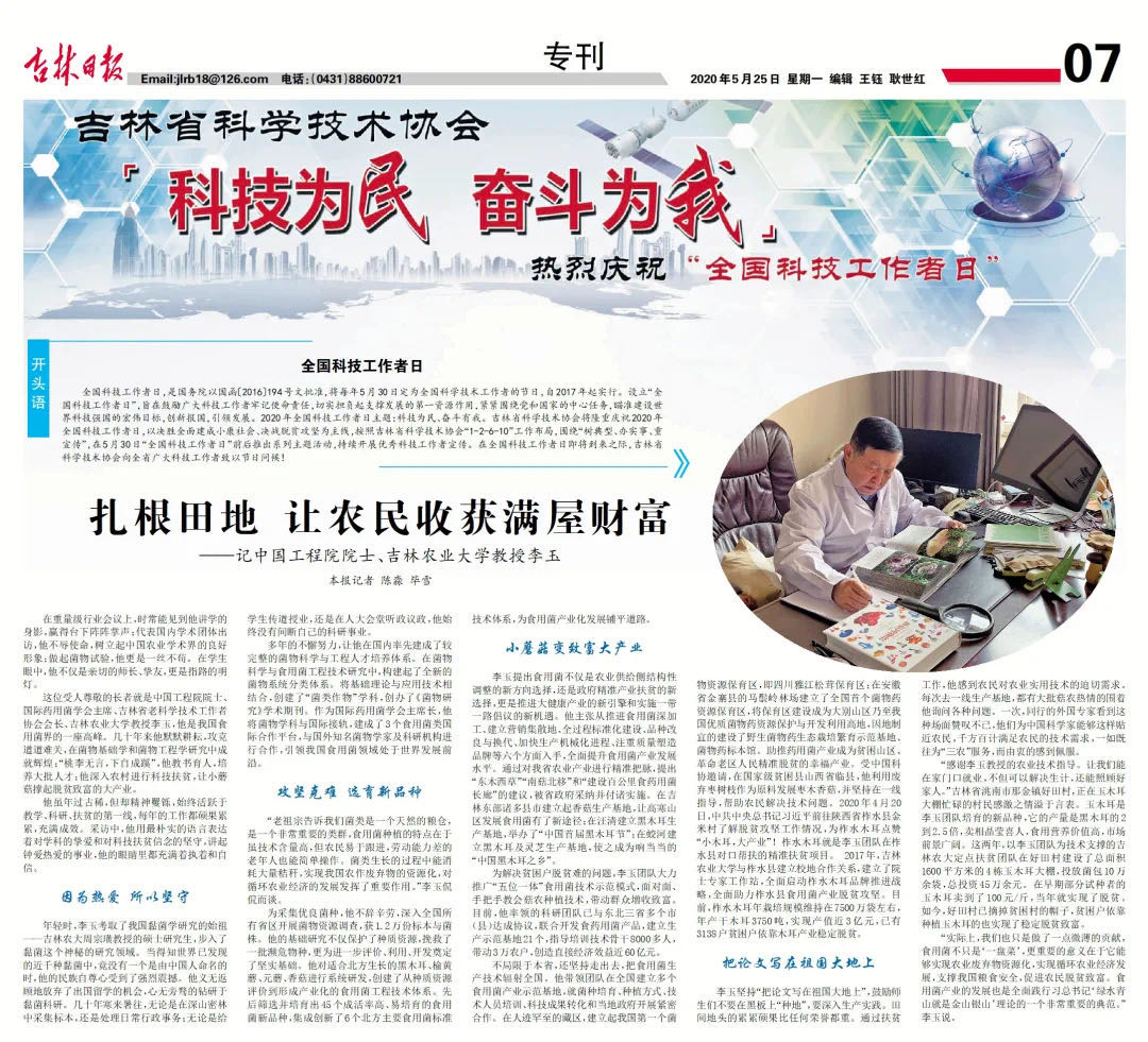 5月25日,吉林日报以《扎根田地,让农民收获满屋财富——