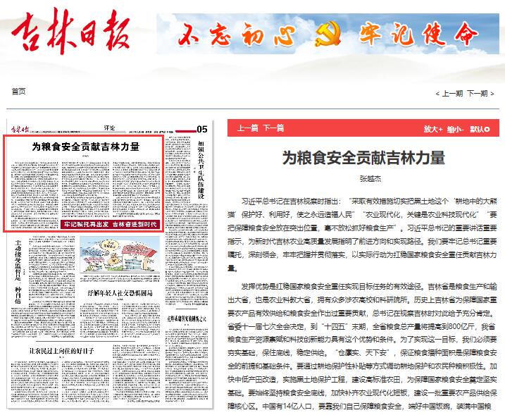 9月2日,吉林日报刊发了我校副校长张越杰署名文章《为粮食安全贡献吉林力量》。