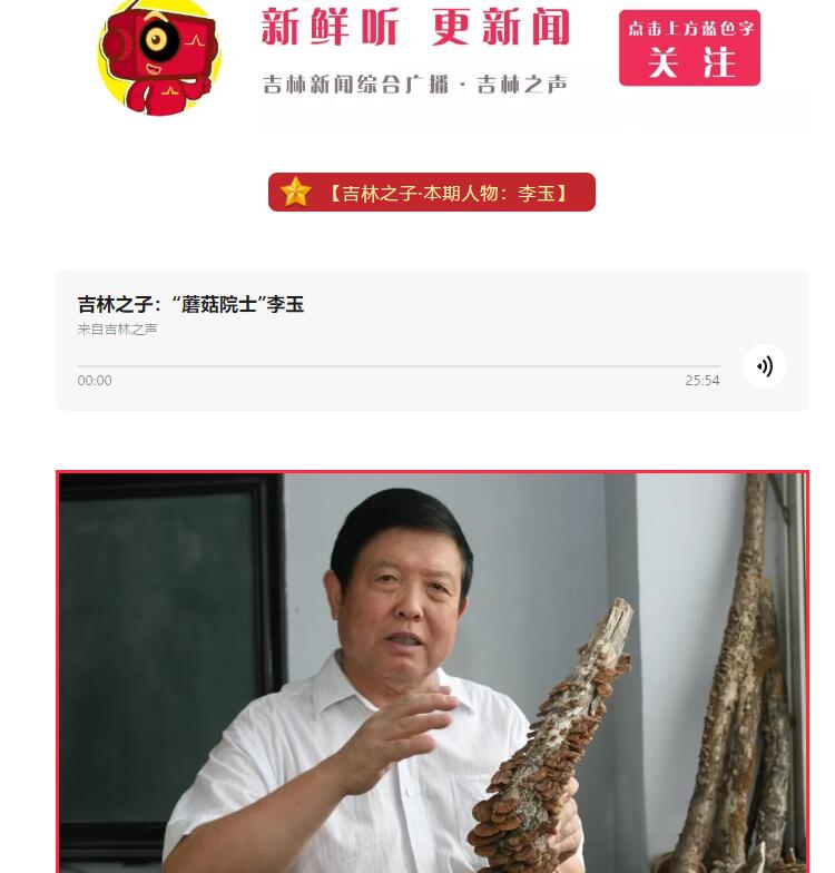 9月8日,吉林新闻综合广播吉林之声以《【吉林之子·第4期】本期人物:“蘑菇院士”李玉》为题,对中国工程院院士、我校教授李玉进行了专访。