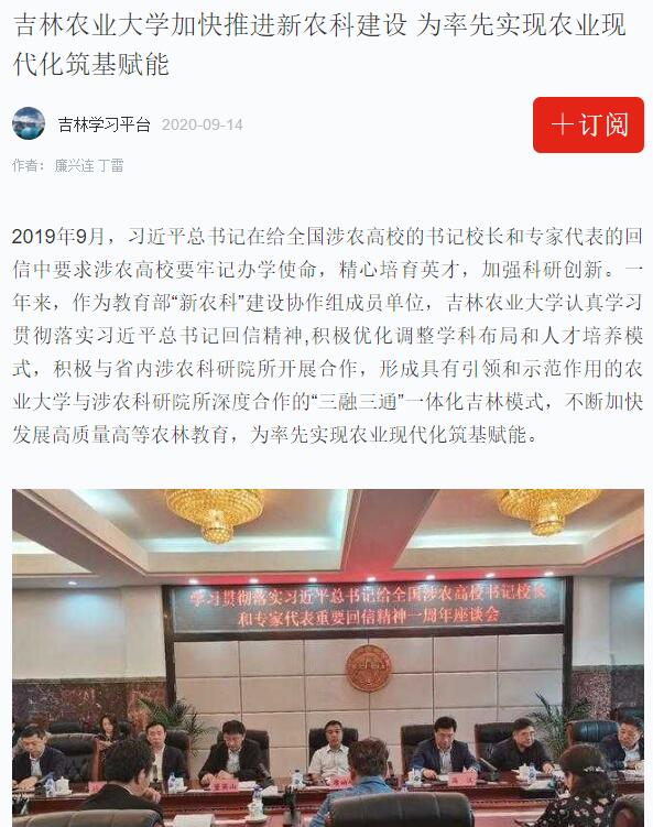9月10日,吉林农业大学召开座谈会深化推进“新农科”建设,促进农业大学和涉农科研院所的“三融三通”。