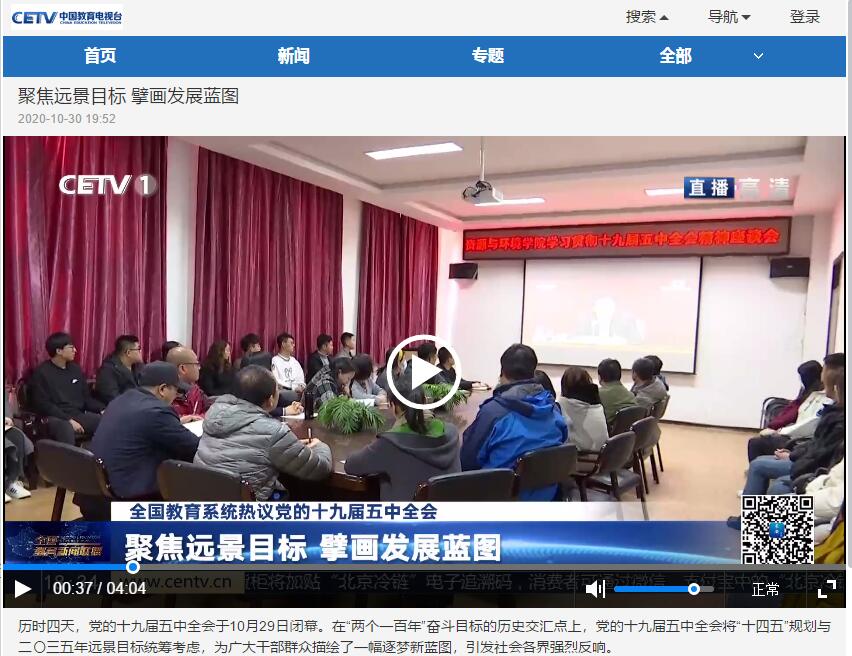 10月30日、31日,中国教育电视台分别以《聚焦远景目标 擘画发展蓝图》和《高瞻远瞩 脚踏实地 各地师生立志做“十四五”筑基人》为题,对我校师生热议党的十九届五中全会进行了采访报道。