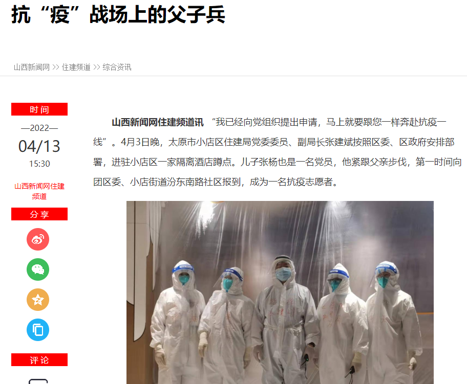 近日,《人民网》《山西新闻网》《太原晚报》分别报道了我校马克思主义学院思想政治教育专业2019级山西籍硕士研究生张杨、周星宇与各自父母两代中共党员勇担责任,奔赴抗疫一线的先进事迹。