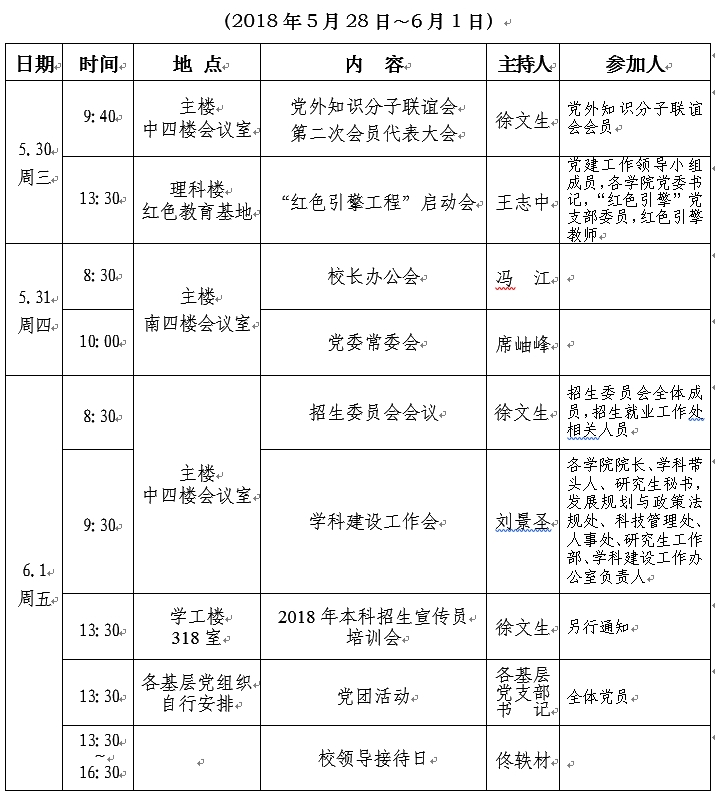2017—2018学年第二学期第十三周工作要点