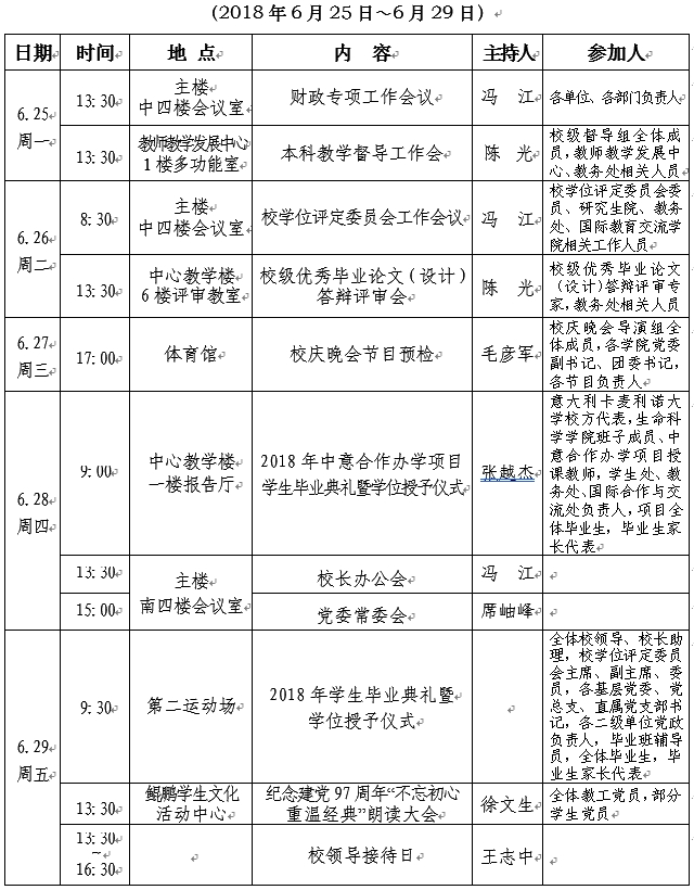 2017—2018学年第二学期第十八周工作要点