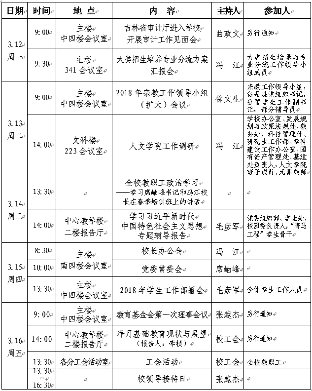 2017~2018学年第二学期第二周工作要点