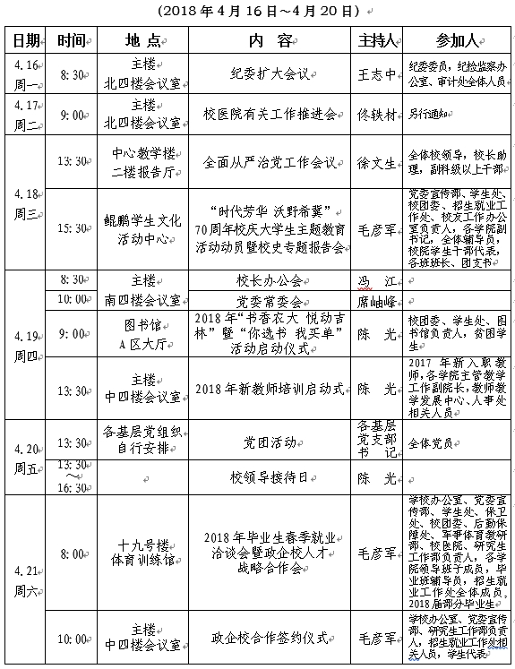 2017—2018学年第二学期第六周工作要点