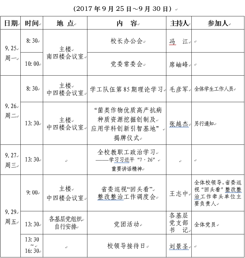 2017~2018学年第一学期第四周工作要点