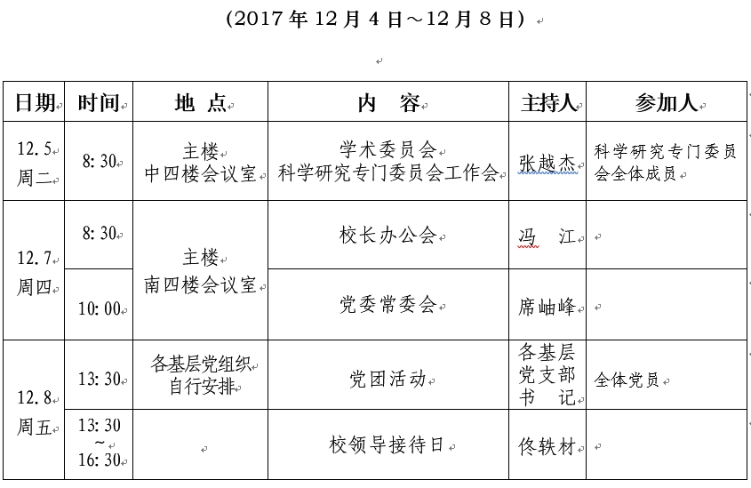 2017—2018学年第一学期第十五周工作要点