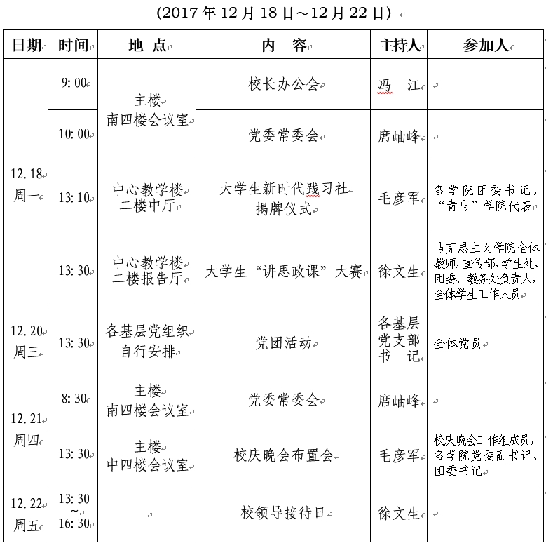 2017—2018学年第一学期第十七周工作要点